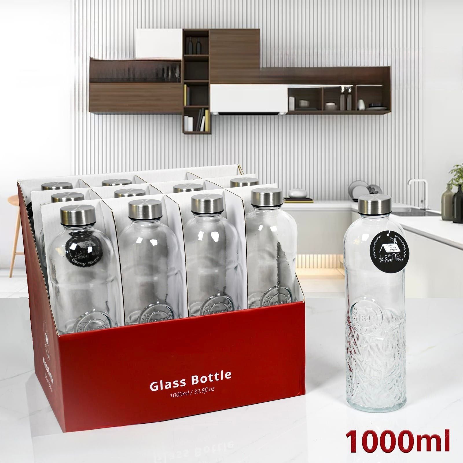 1000 ml Glass Water Bottle With Stainless Steel Lid