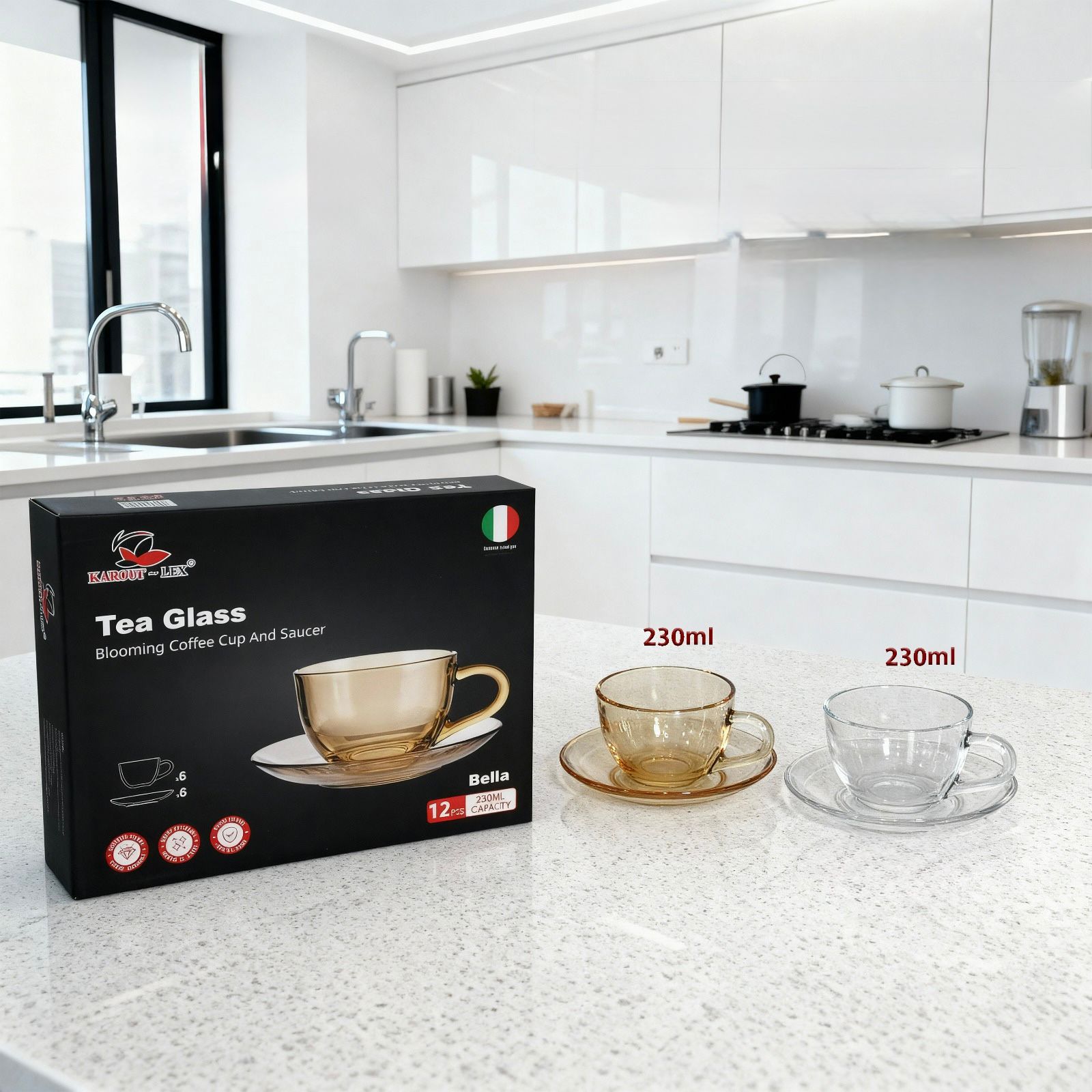 12 Pcs Transparent Glass Cup With Saucers Set