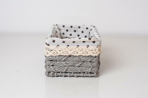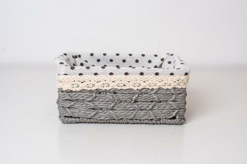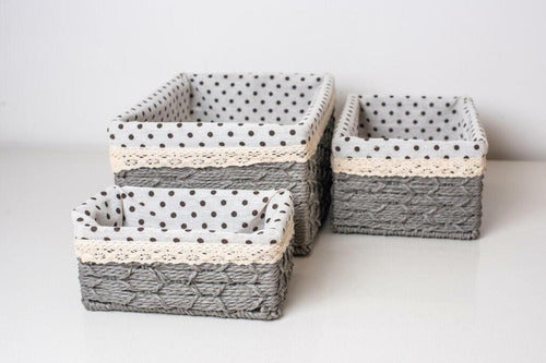 3 Pcs Rectangular Woven Basket With Printed Fabric Set