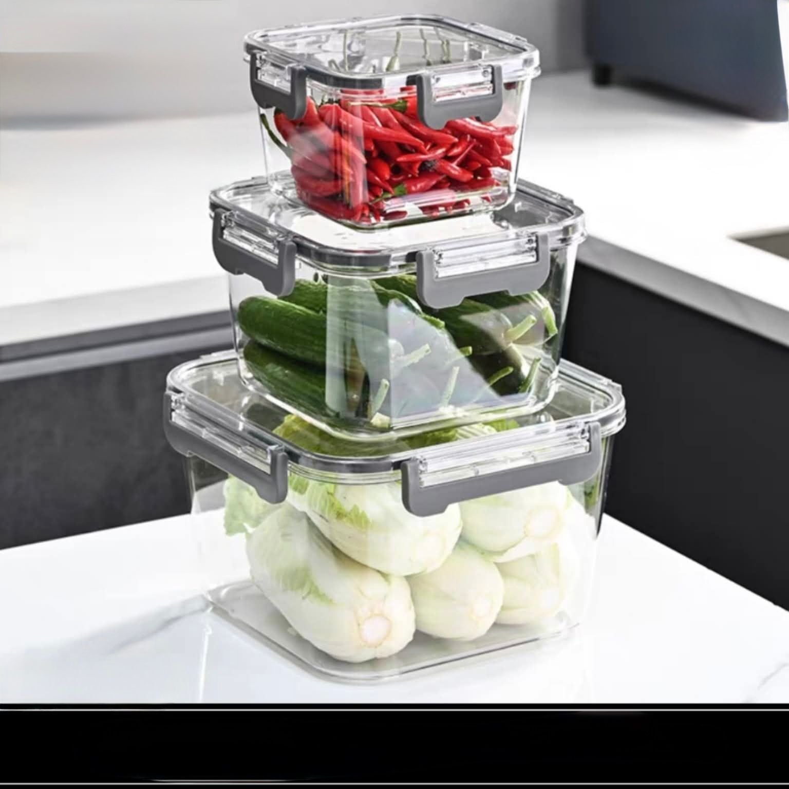 3 Pcs Transparent Squared Plexi Storage Box With Airtight Lid Set