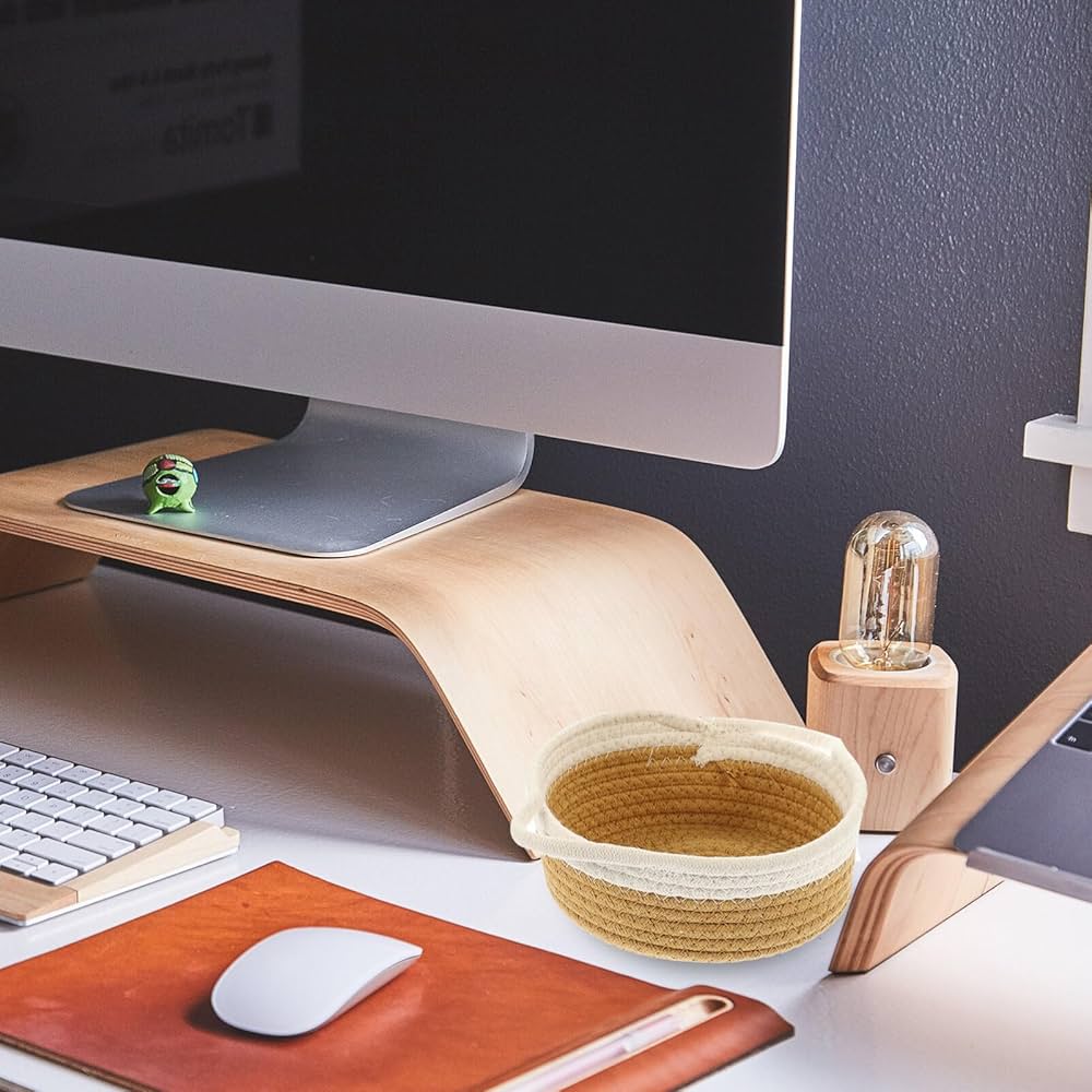 - This woven storage basket can be used to hold some stationery, cosmetics, snacks on the desk.