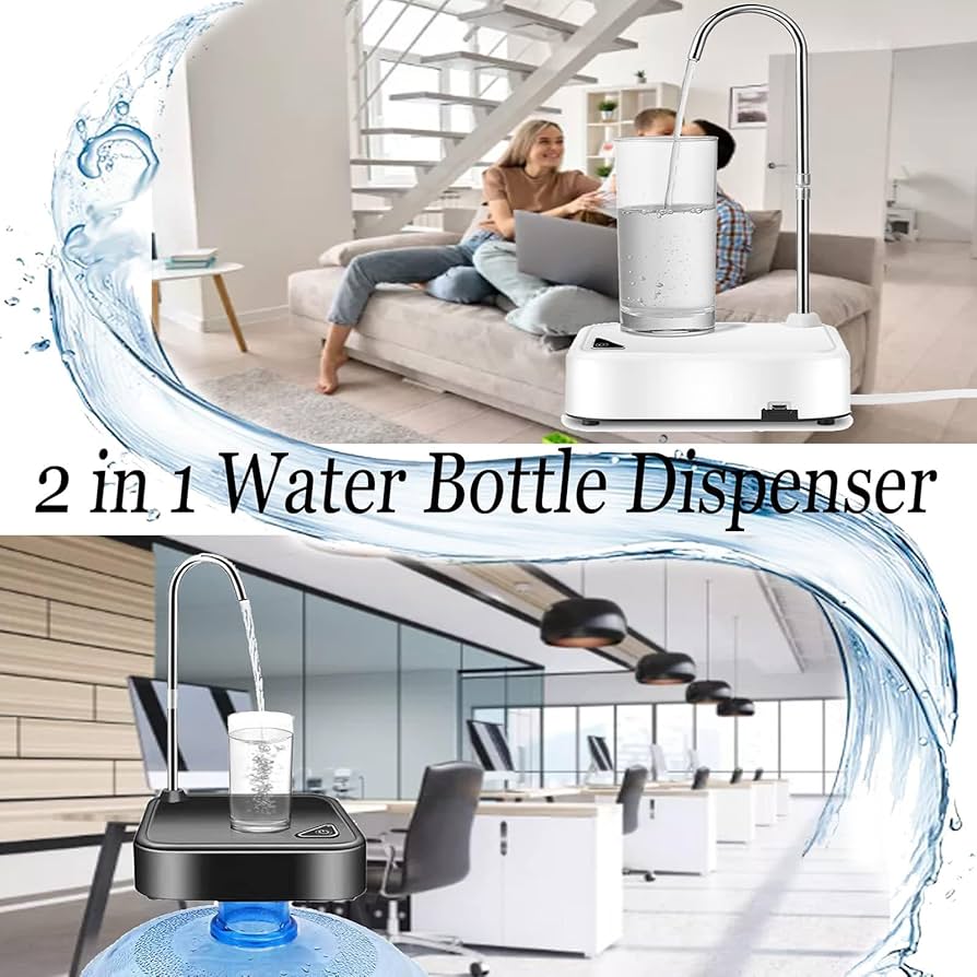 - 【2in1 Water Dispenser】The main body of the water pump is mainly made of PP material. The outlet pipe is made of stainless steel and can be rotated 360°.it can be used as a desktop water pump, or it can be directly inserted into a 5gallon bucket.