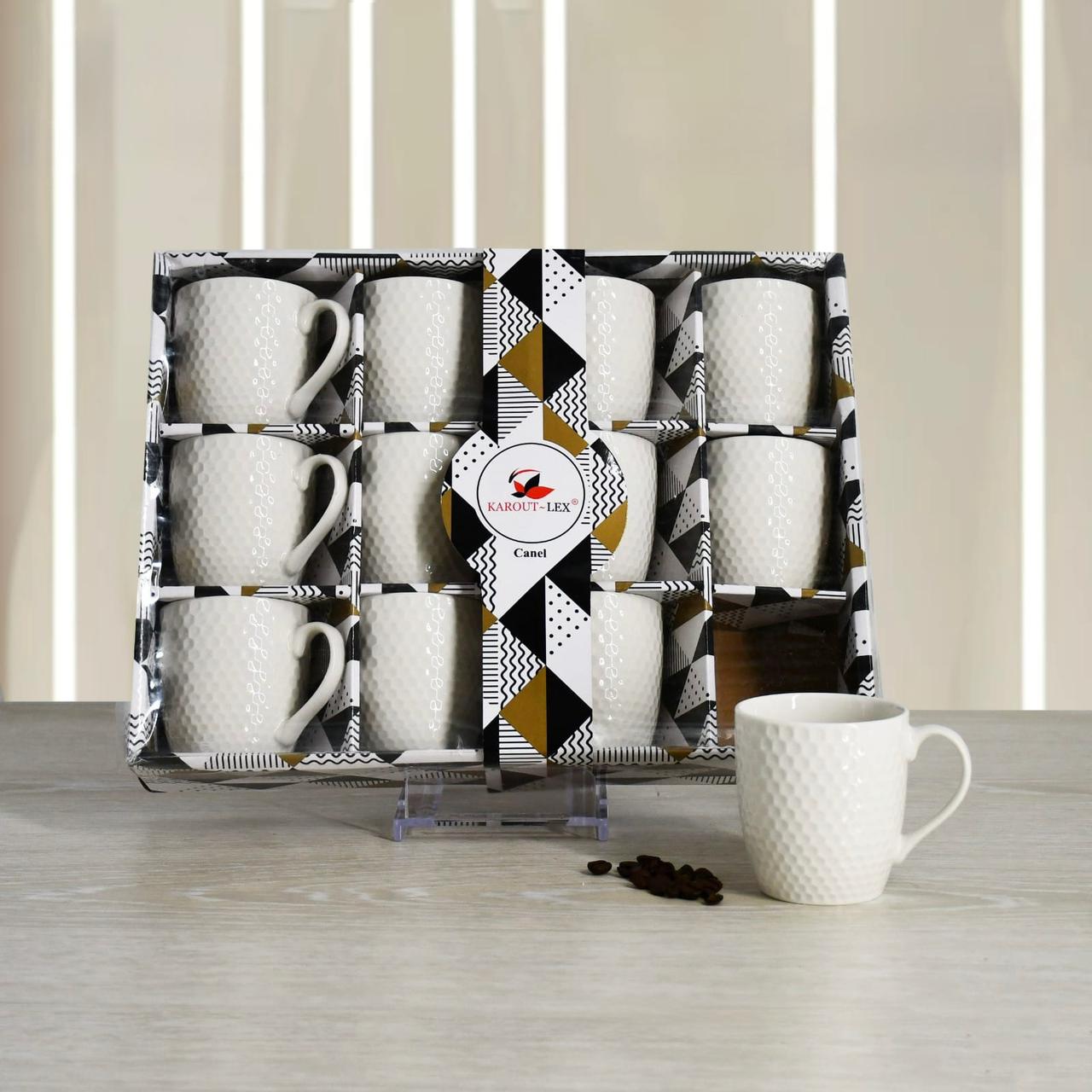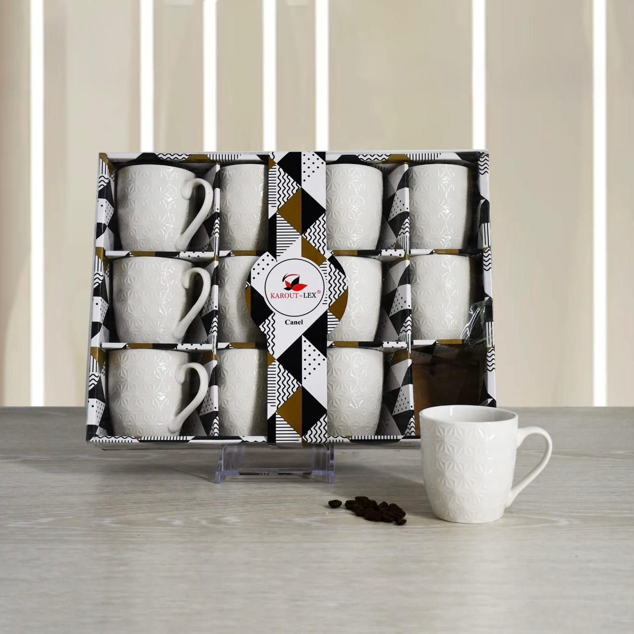 Canel , 12 PCs White Porcelain Tea Mugs Set