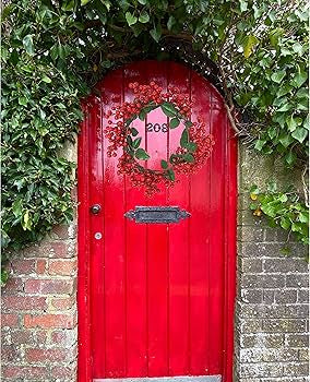 - Christmas wreaths for front door. Features red berries and winter greenery. All elements are attached by adjustable wires. Use this festive wreath greenery to decorate your home for a lovely Christmas look