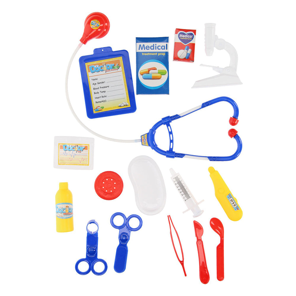 Doctor's set for future doctors. In the package you will find 9 pieces for each doctor - a stethoscope, a microscope, medicines....