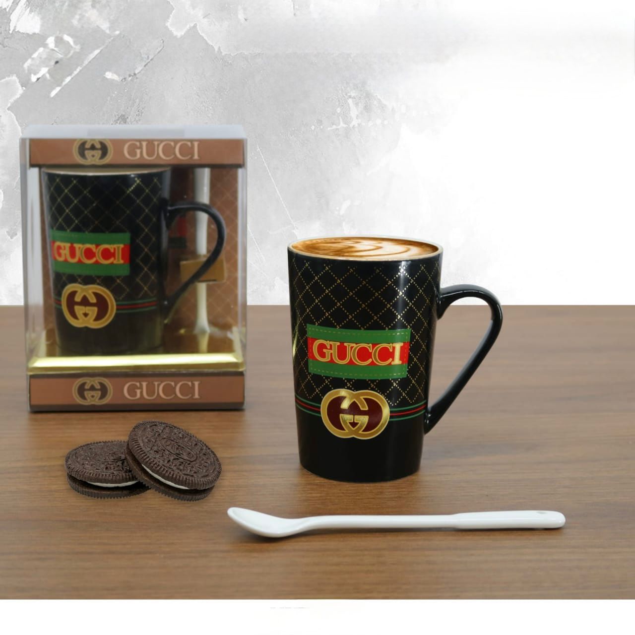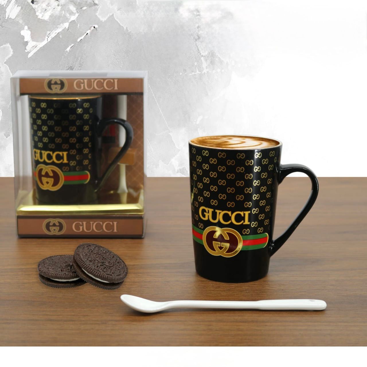 Gucci & Louis Vuitton Ceramic Mug with Spoon