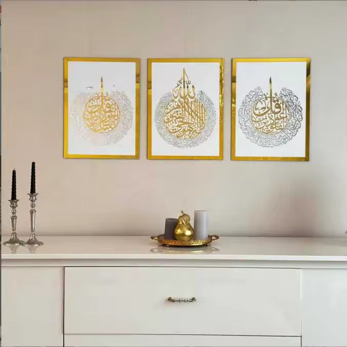 Islamic Set of 3 White and gold 65x50
