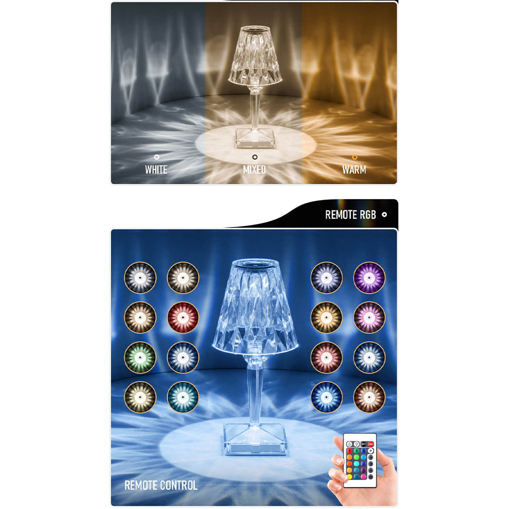 Crystal desk lamp: The crystal bedside lamp is made of PC transparent material. Turn on this lamp and it shines like a diamond, casting shadows. This crystal table lamp is simple, luxurious, comfortable and romantic. Suitable for home, balcony, and table decoration