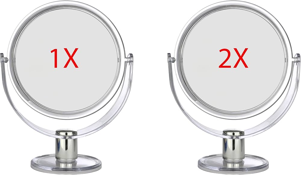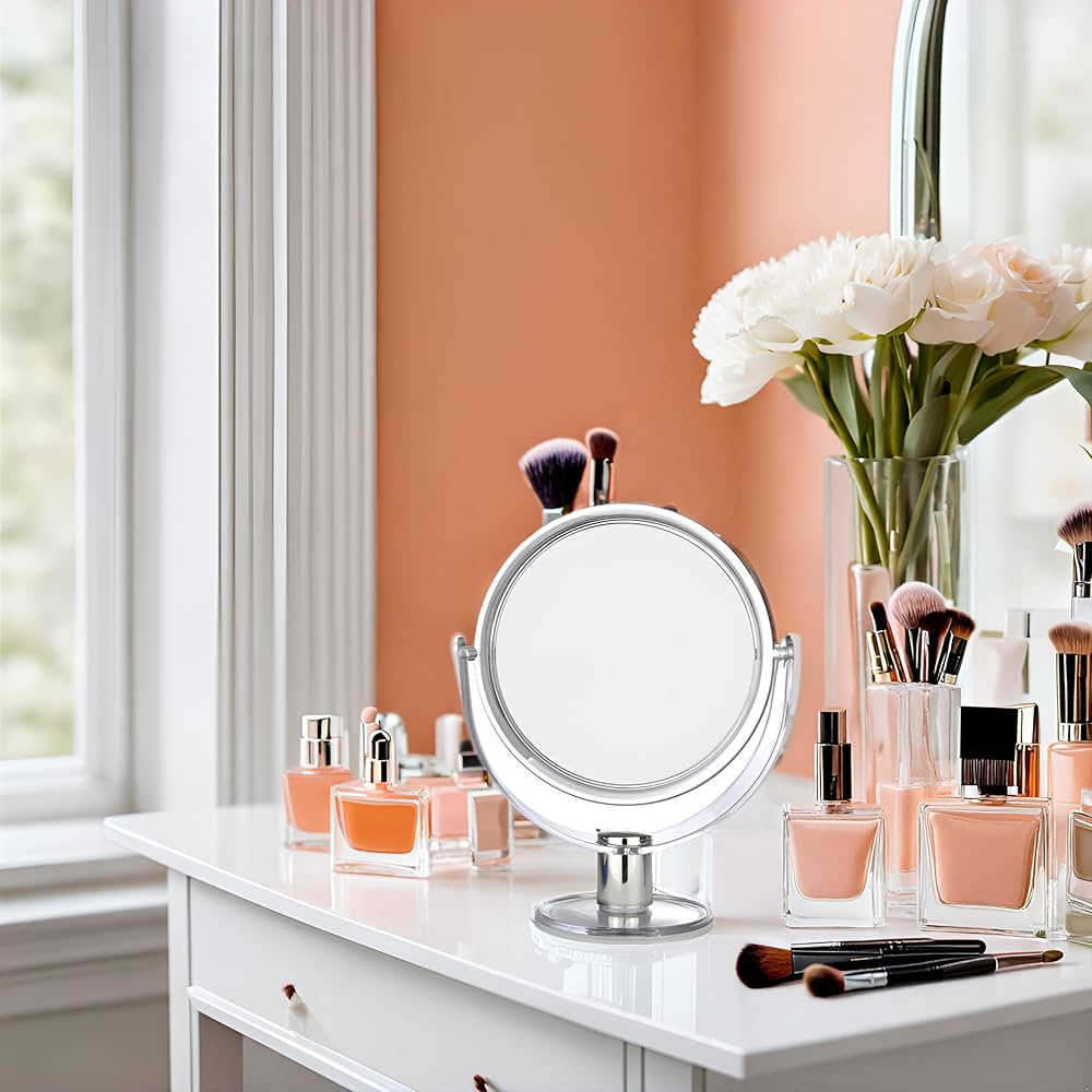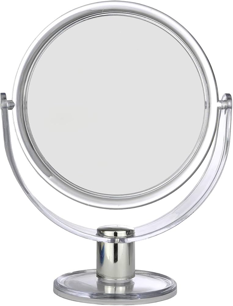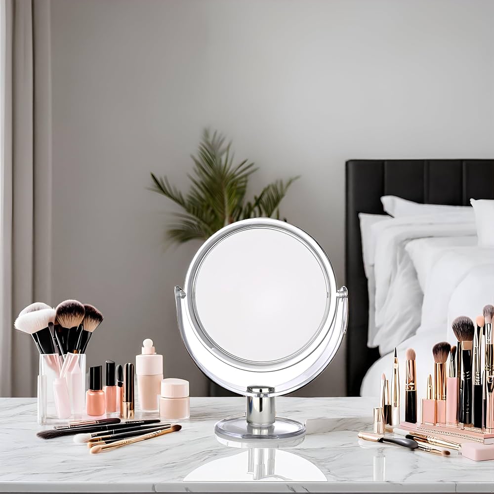 Plexi Round Tabletop Two-Sided Swivel Vanity Makeup Mirror with 2X Magnification
