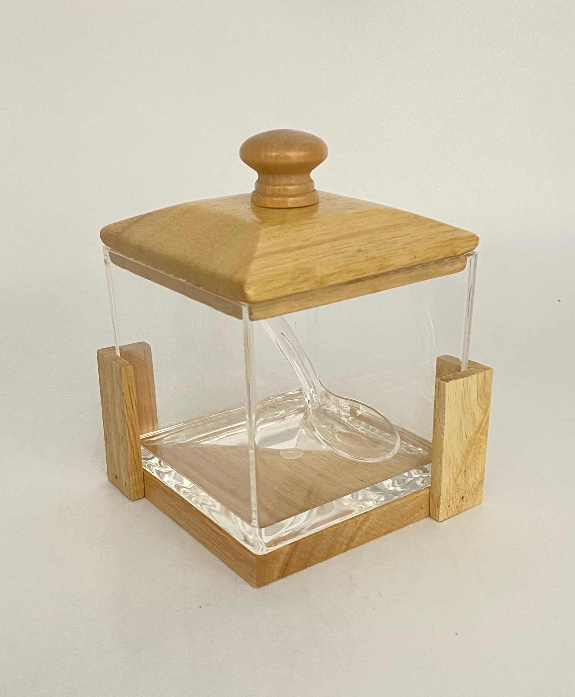Squared Acrylic Sugar Pot With Bamboo Stand & Lid