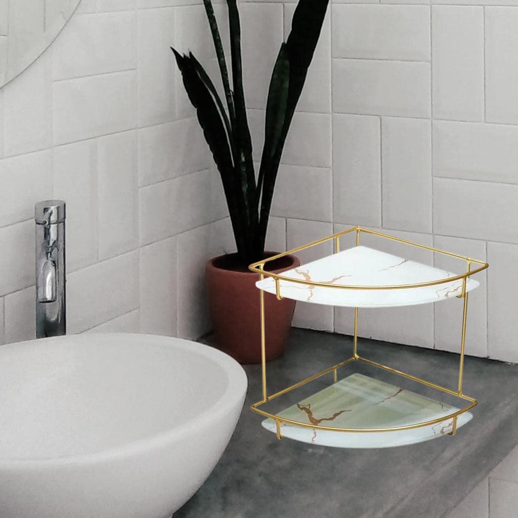 The corner shelf with two-tier storage slabs will lend a stylish touch to the nooks and corners of a contemporary home. From make-up brushes to lotion bottles, the corner shelf will accommodate a variety of beauty essentials. The two-tier corner shelf comes with marble-printed racks which is a great addition to any office space.