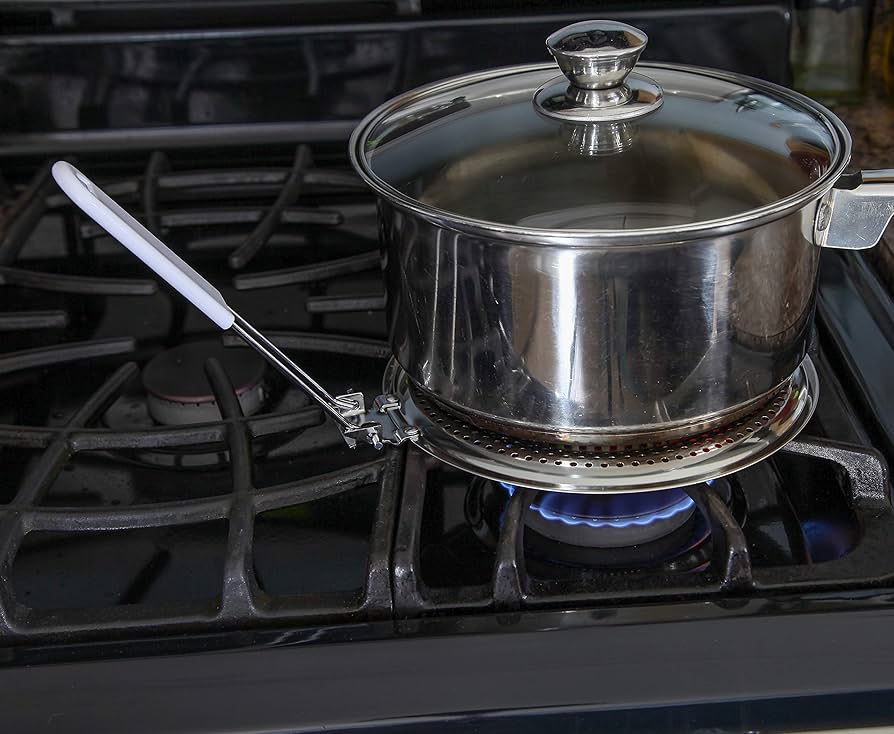 - PREVENTS SCORCHING - This heat diffuser reduces and distributes heat evenly, eliminates hot spots in pans, and keeps foods from scorching. Use under any pan with perfect results.