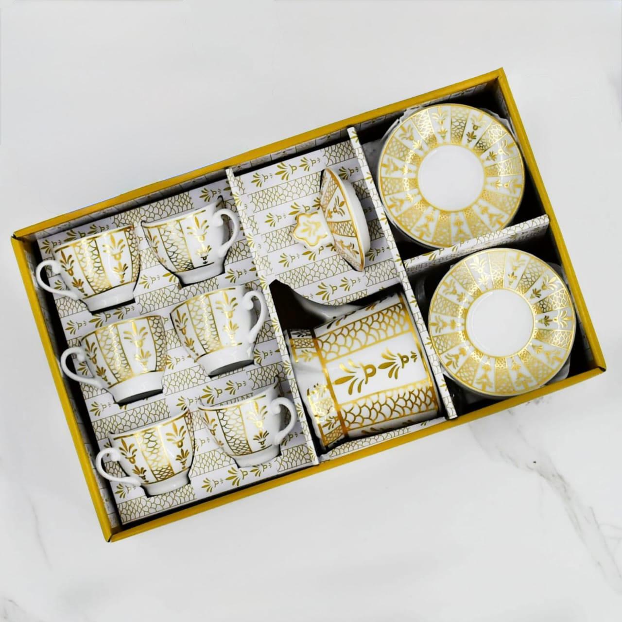 Otantik, 12 Pcs Coffee Cups With Saucers & Ceramic Coffee Pot Set