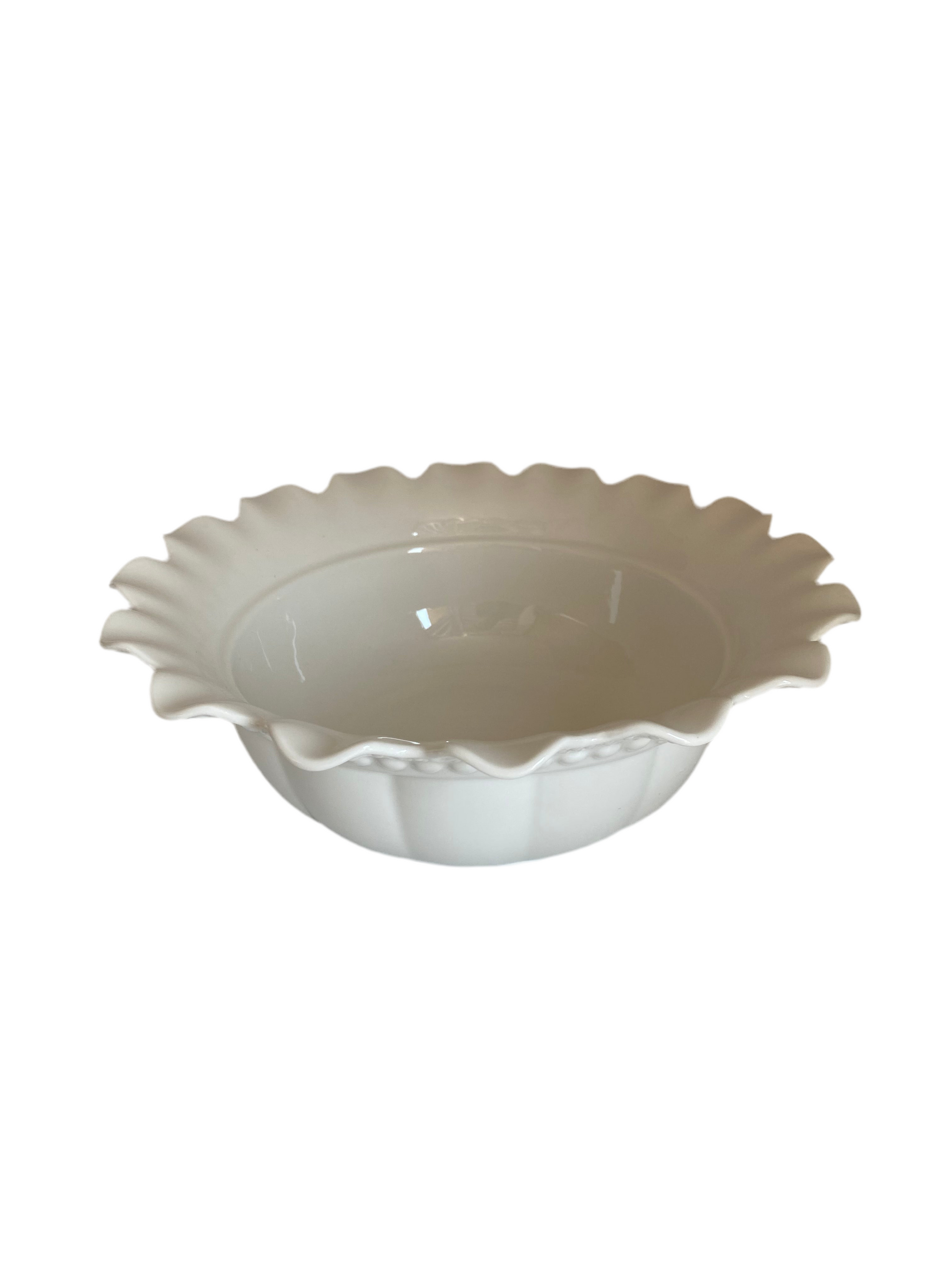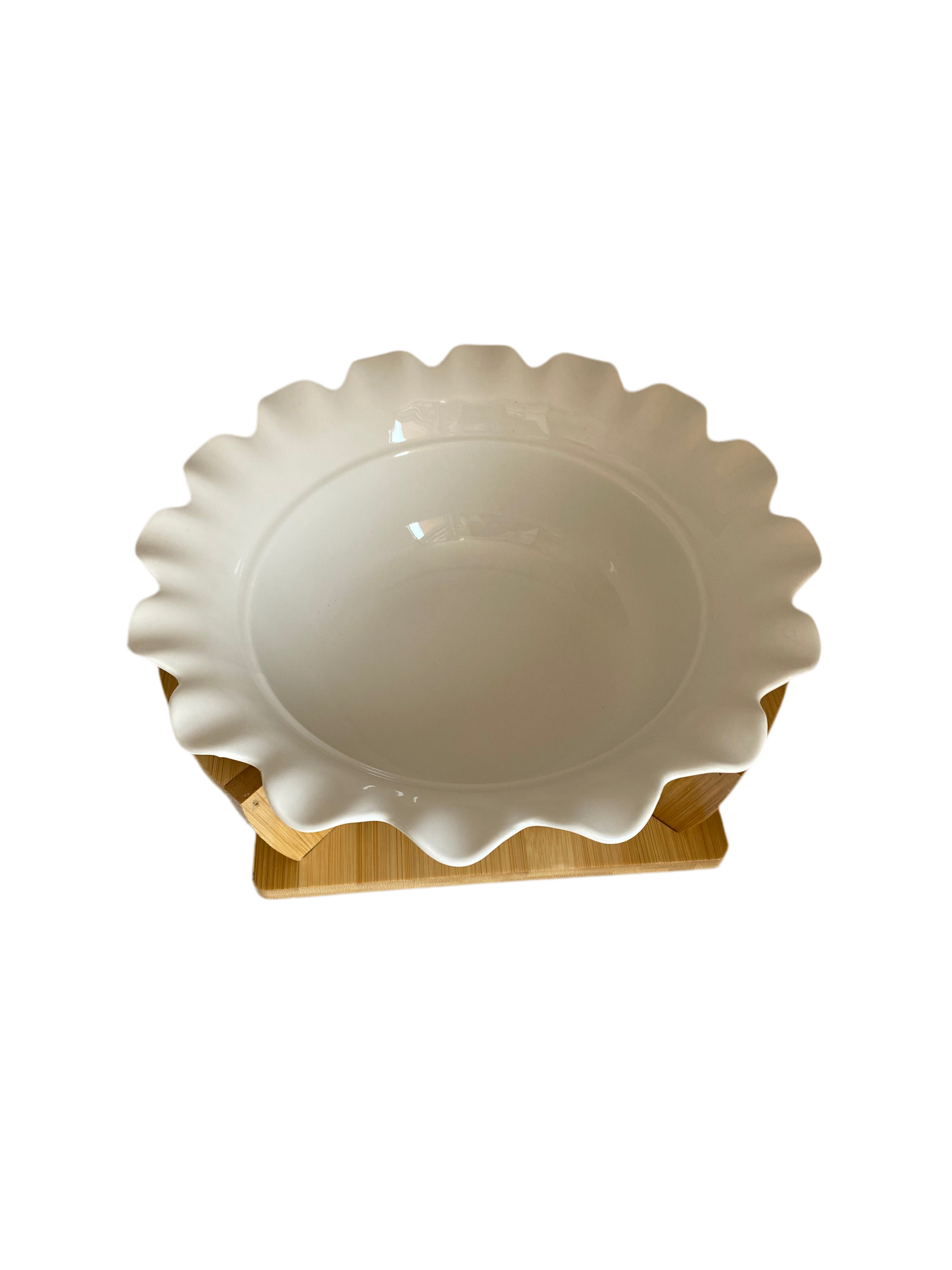White Porcelain Flower Bowl With Bamboo Stand